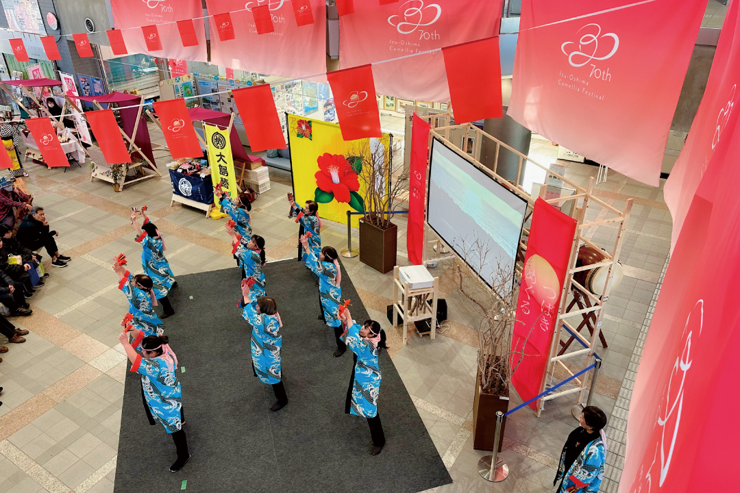 その土地に暮らす人々にとっては、日常の何気ない風景かもしれない。だが、風景の背景には脈絡と受け継がれてきた“生きている地域の姿”が広がっている。火山島という独特な風景の中、椿と人との関わり合いの中から生まれ、育まれてきた“生きている地域の姿”を垣間見る『風土』への入り口として、元町港船客待合所は伊豆大島椿まつり総合案内所として、皆様をお迎えします。