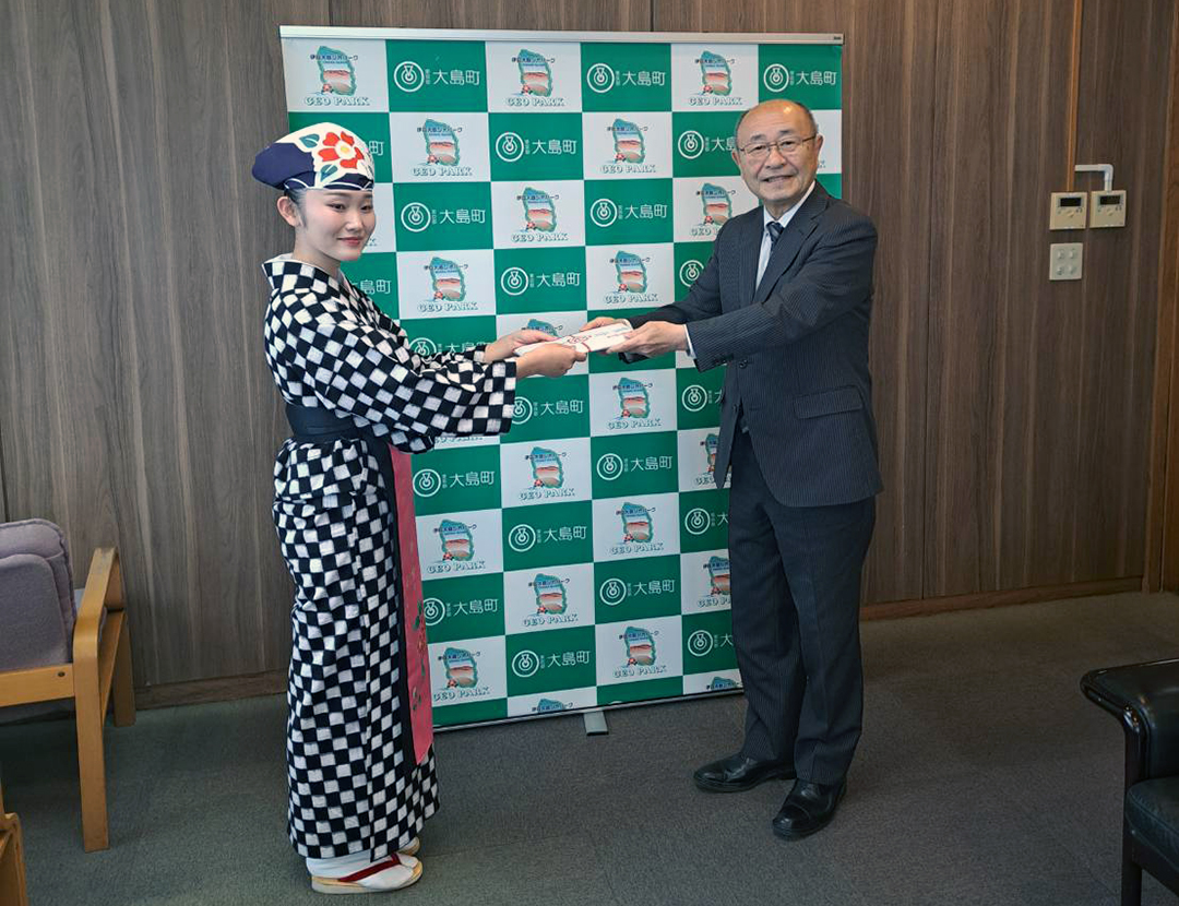 ミス大島には大島文化を伝承する代表として今後一年間大島町に関する各種行事及び、伊豆大島のPR活動を行い、旅客誘致に努めることを目的にご尽力賜りますよう依頼し 認定いたしております。今後ともご指導ご鞭撻を賜りますよう、心よりお願い申し上げます。